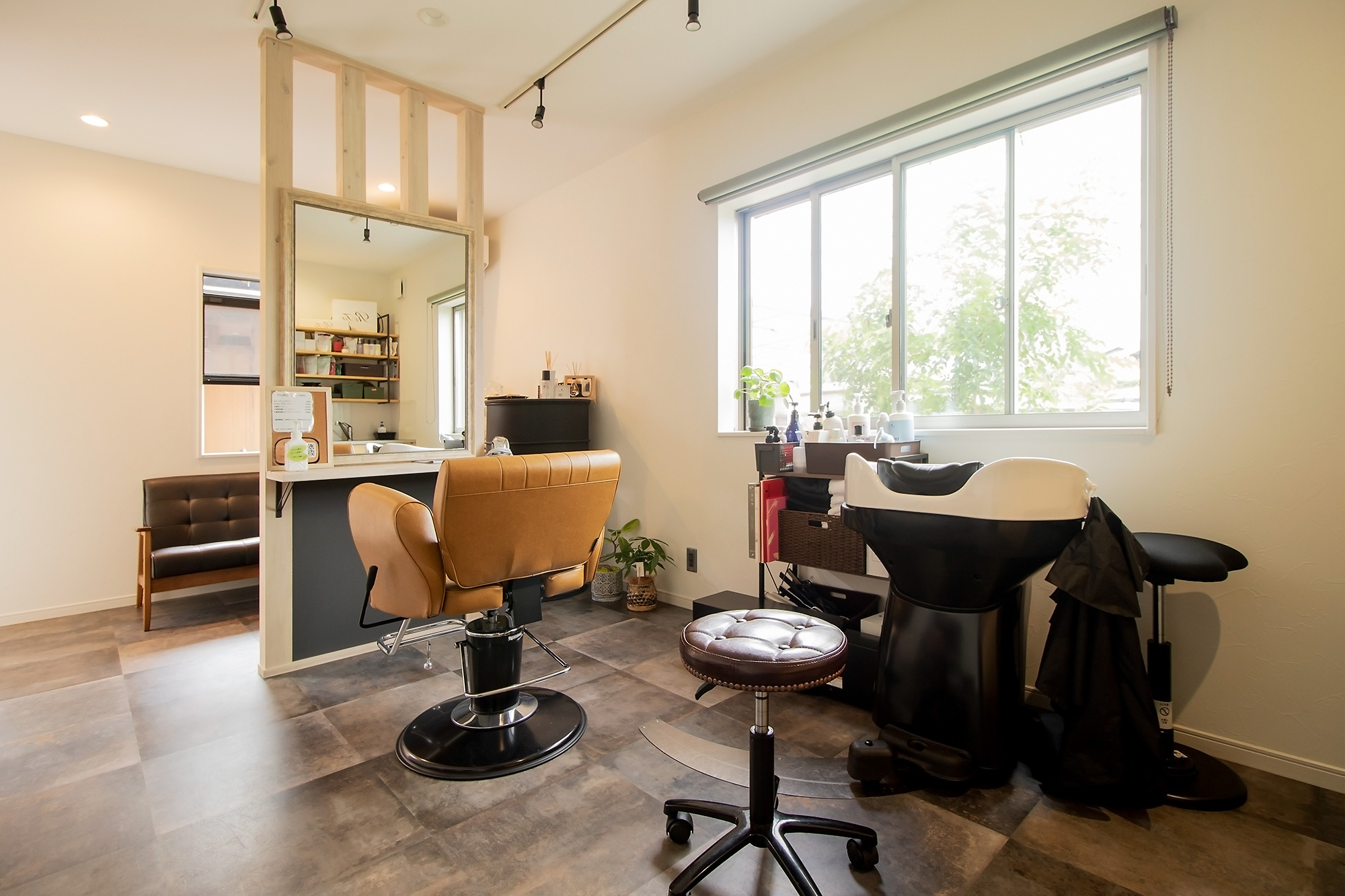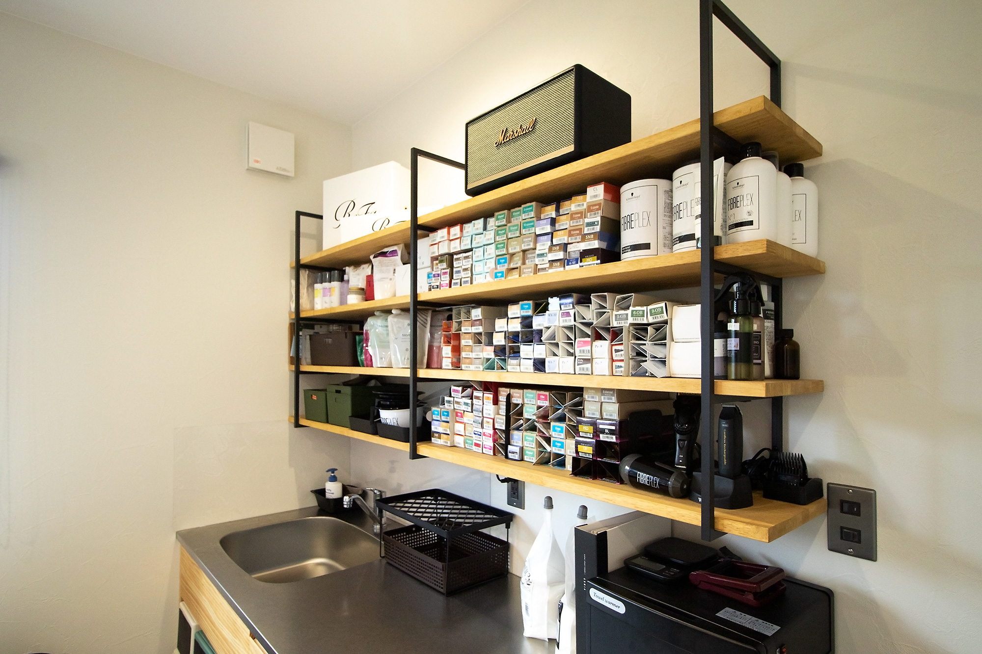美容室に、su:ijiキッチンと無垢の木の収納をご採用いただきました。