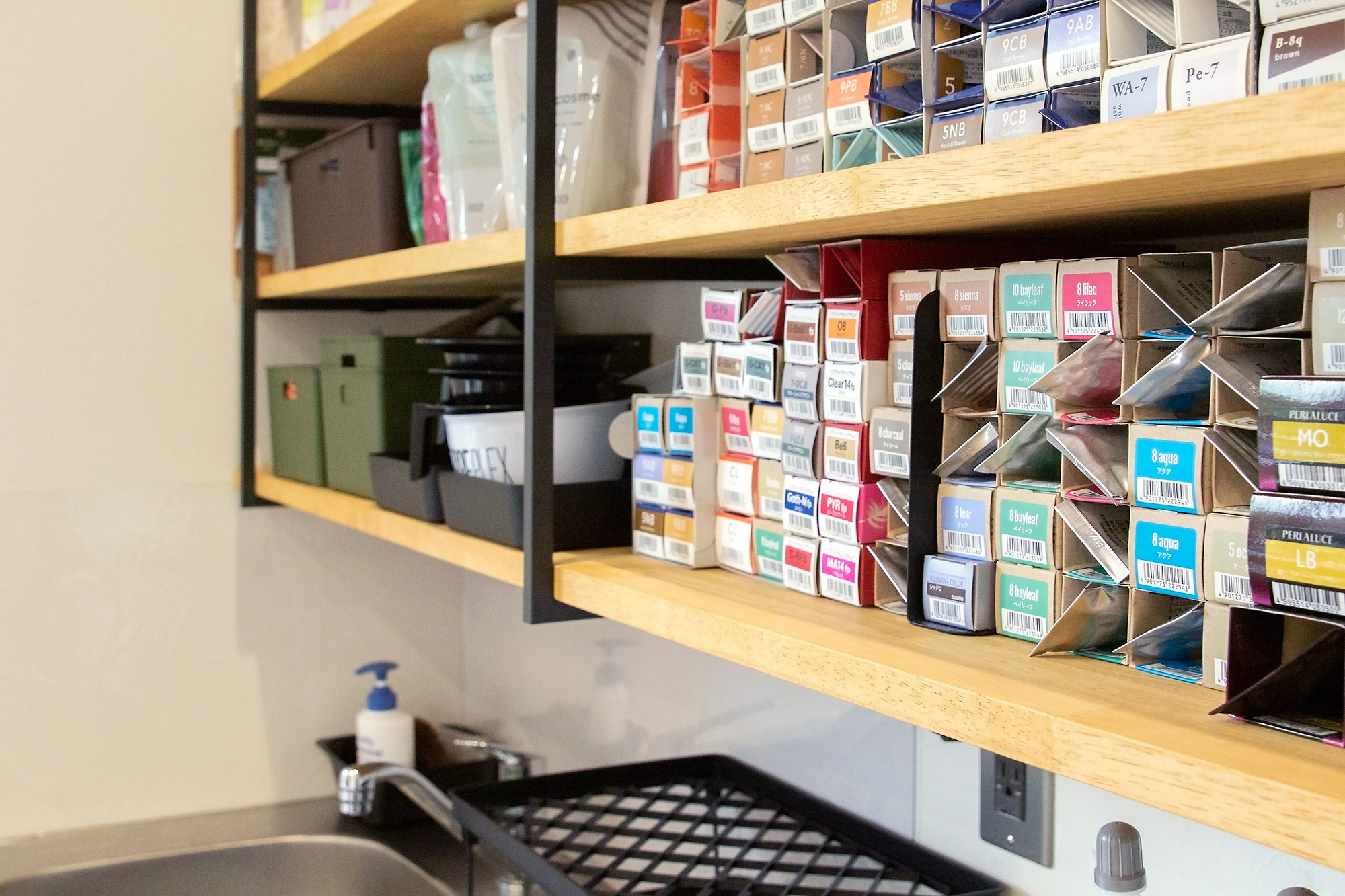 カラー剤やよく使うものはパッと取り出せるという使い勝手も気に入っているそうです。