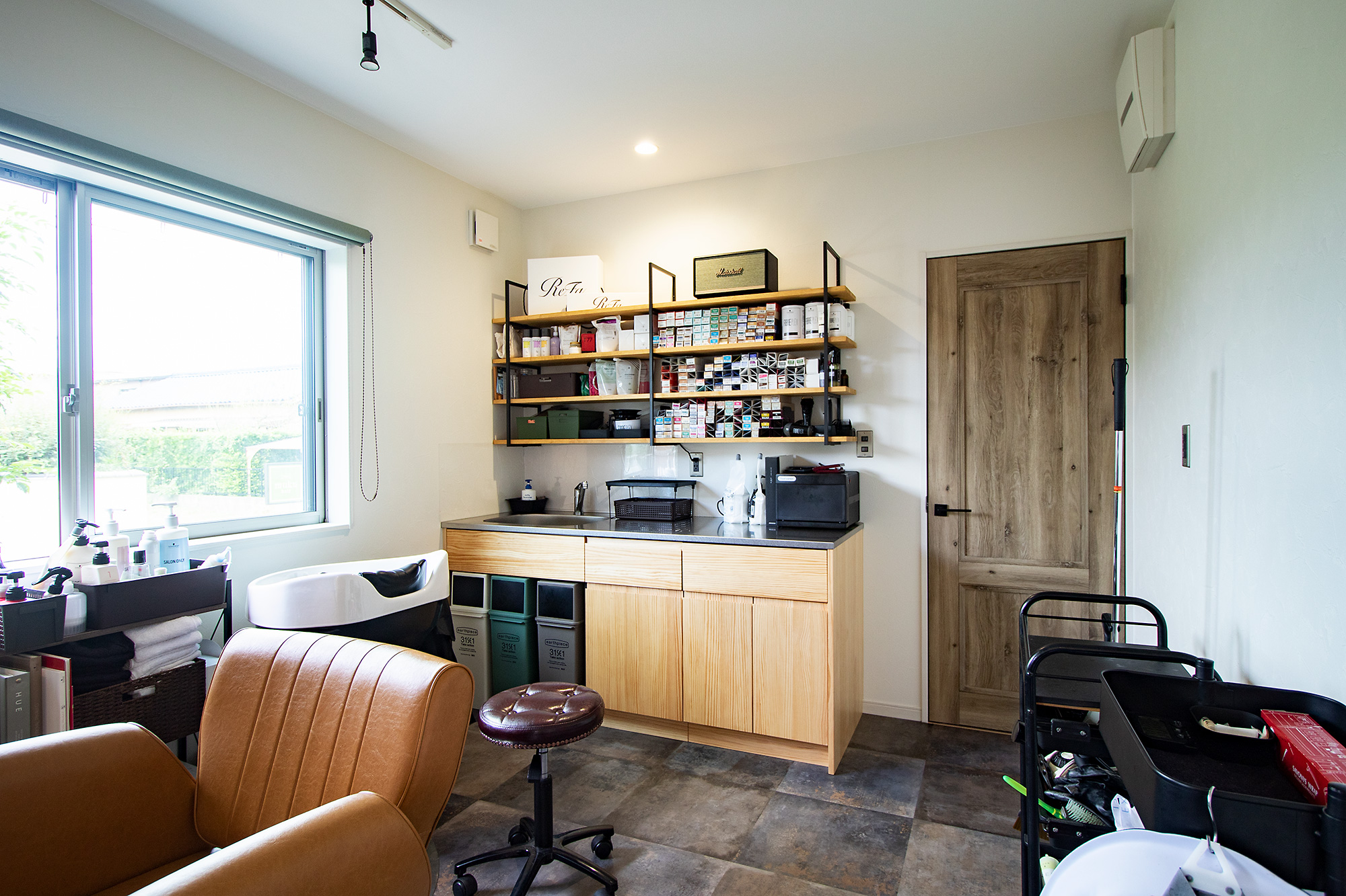 美容室の一角に、作業台として無垢の木のキッチンsu:ijiを採用されました。