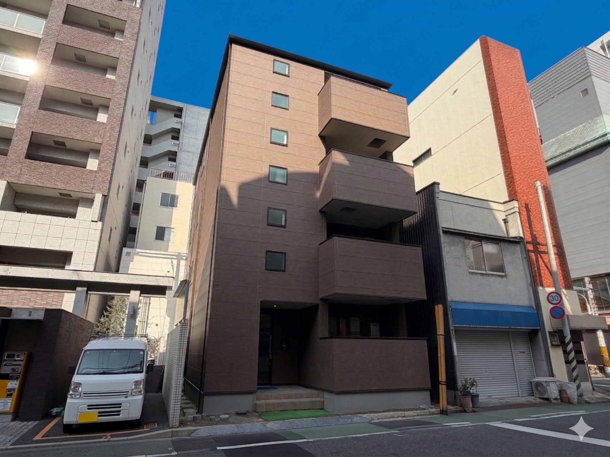 間口の狭い敷地に建築されていますが、各室へ移動する共用部の廊下・階段室を上手く配置し、室内はLDKと個室が2室配置されており、