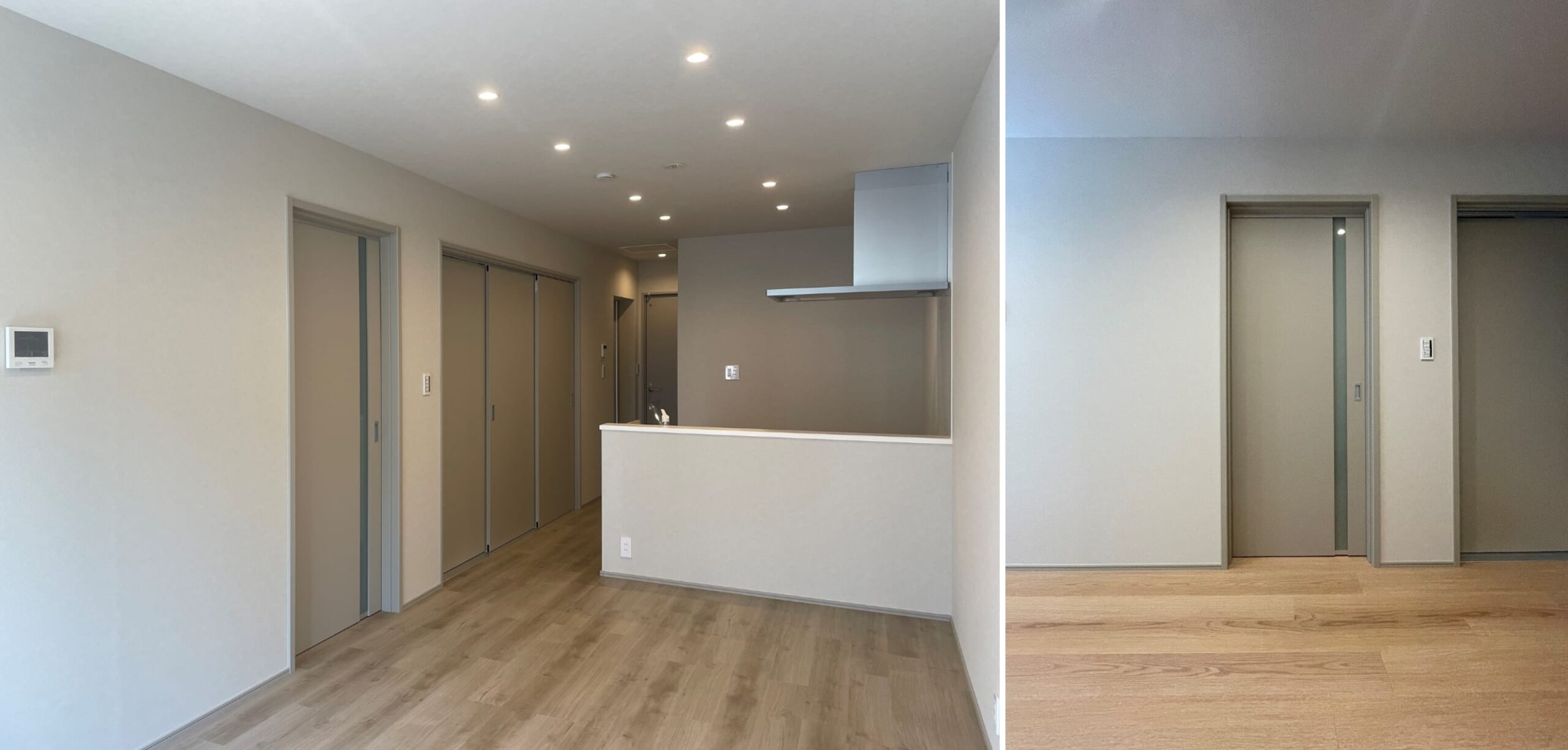 また、建具のドレタスシリーズのウォームグレーの色合いがシンプルな室内にマッチしています。