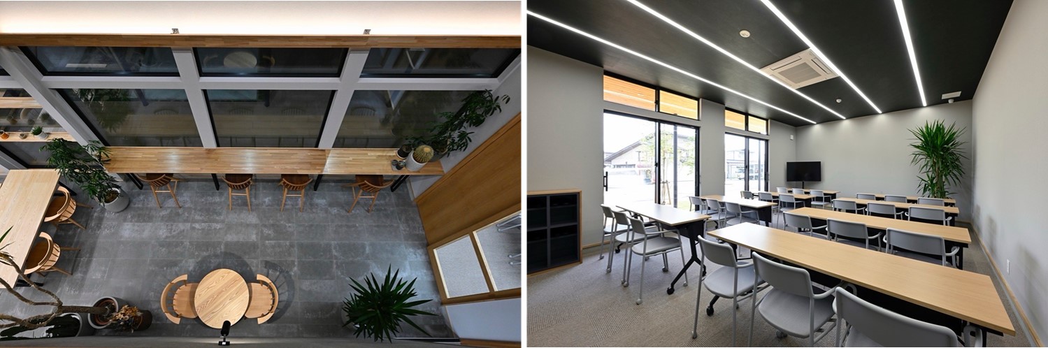 黒の外壁とは対照的な明るい木目の内部空間は、木のぬくもりで癒されます。
