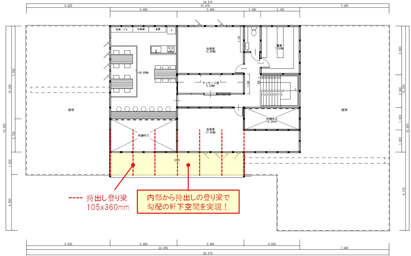 初期段階から伏図を作成し、伏図をもとに打合せを進めていくことで、断面と納まりを確認しながらスムーズに