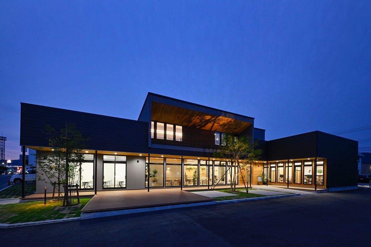 シンプルな外観デザインは黒の外壁を基調とし、木目と開口部をアクセントにした機能的で美しい佇まいです。