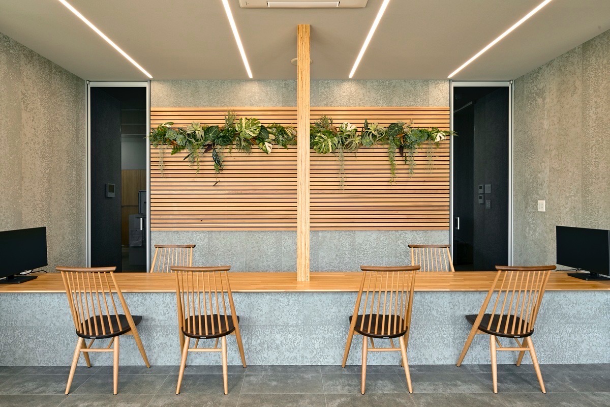 JWOODの平柱が内部空間や開口部のアクセントになっています。