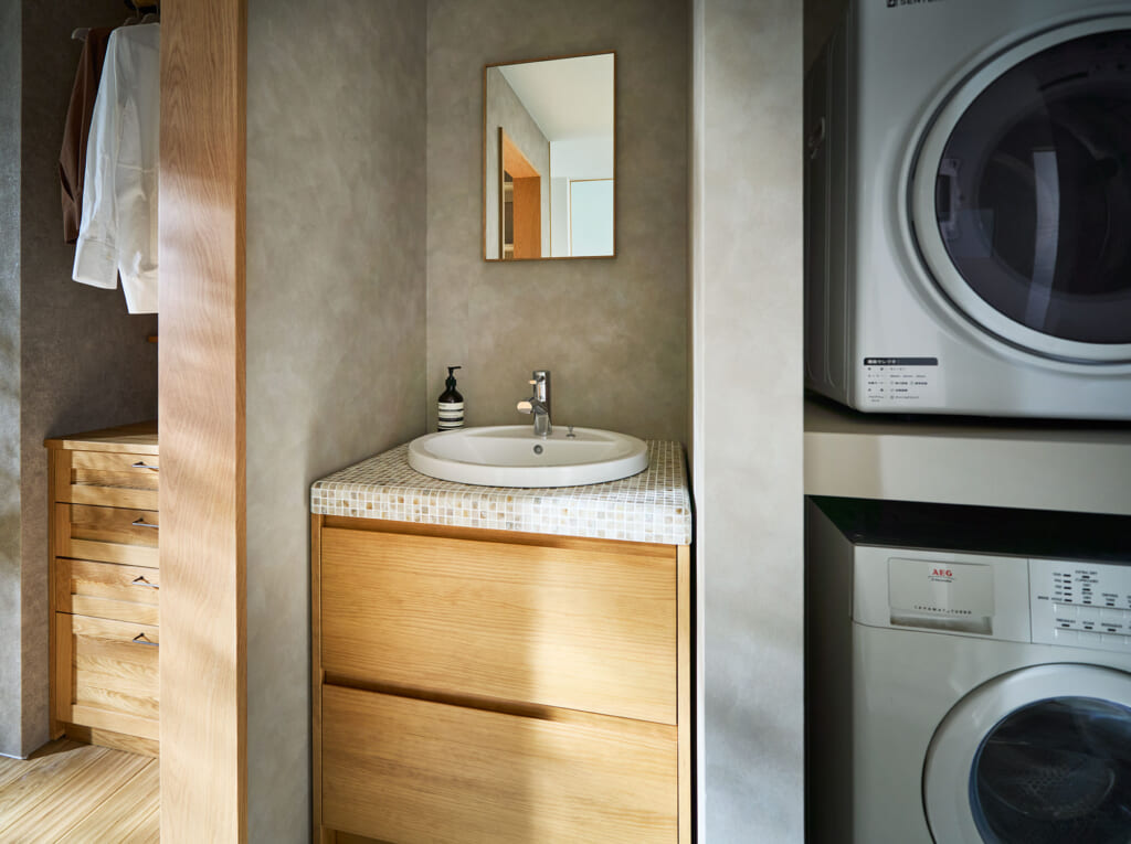 無垢の木のやさしさにつつまれる洗面空間素朴な風合いの無垢の木が穏やかな空気を生み出し、