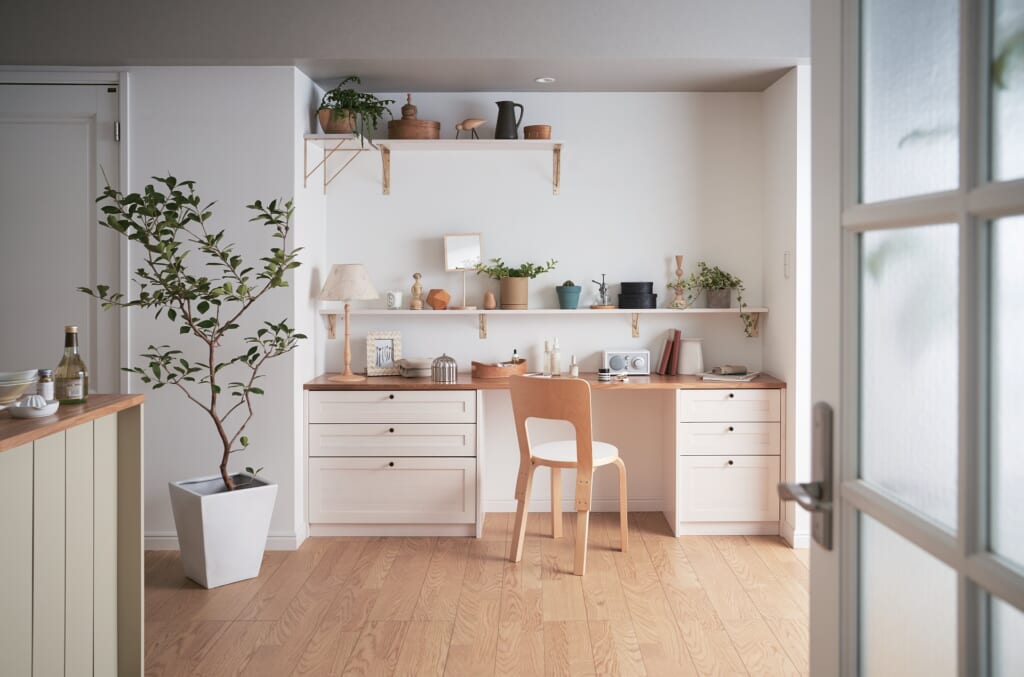 メリット:新たに部屋を作る必要がないため、既存の間取りを活かして手軽に設置できます。家事の合間に作業をしたり、お子様と一緒に勉強したりと、マルチな使い方ができるのが魅力です。
