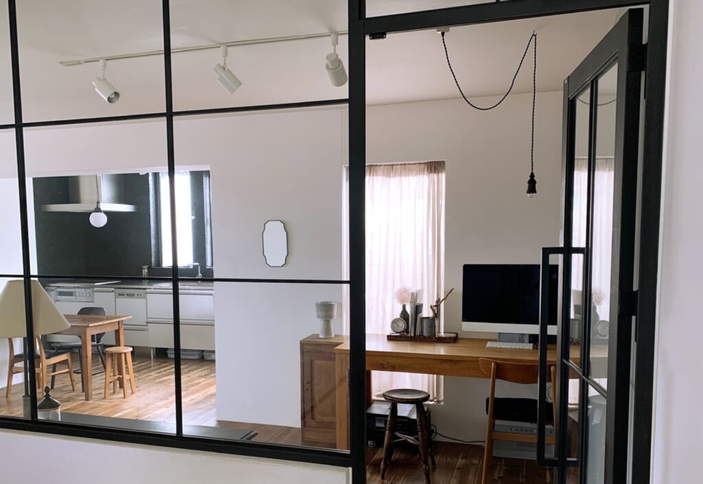 パーテーション、腰壁、室内窓などで緩やかに仕切られたスタイルです。