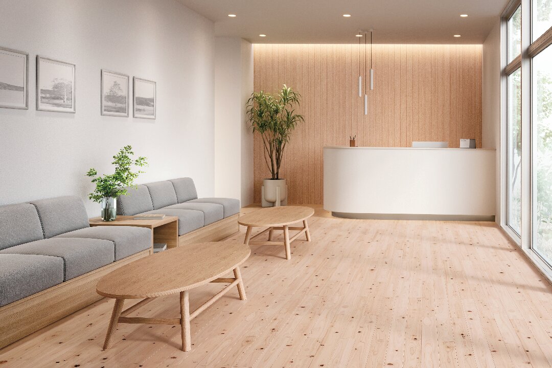 また、2026年参考出品として“不燃突板クロス「Kiori」”を展示いたします。