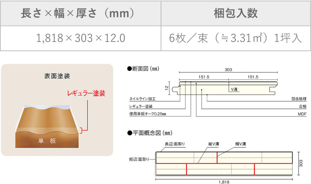 天然木オーク突板浮造り。