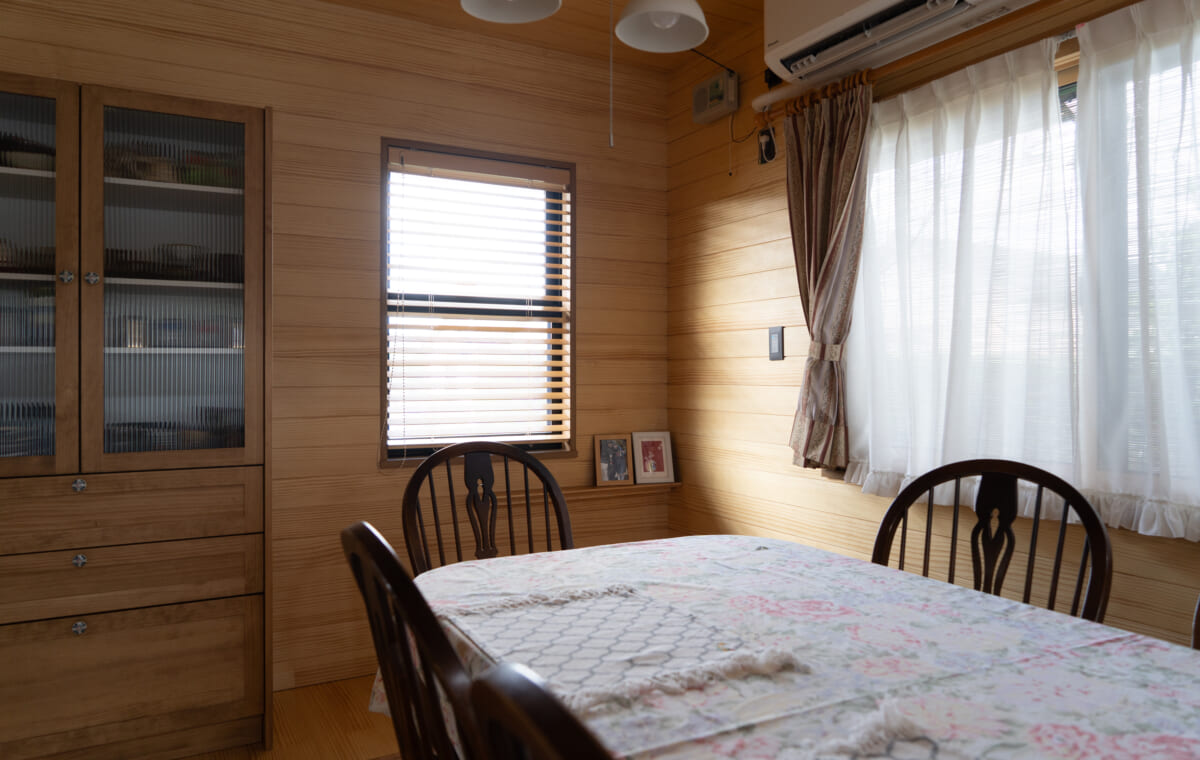 思い描いたのは、木に囲まれたお家。床・壁・天井・カップボードまでふんだんに木が使われており、芳醇な香りが立ち込めます。