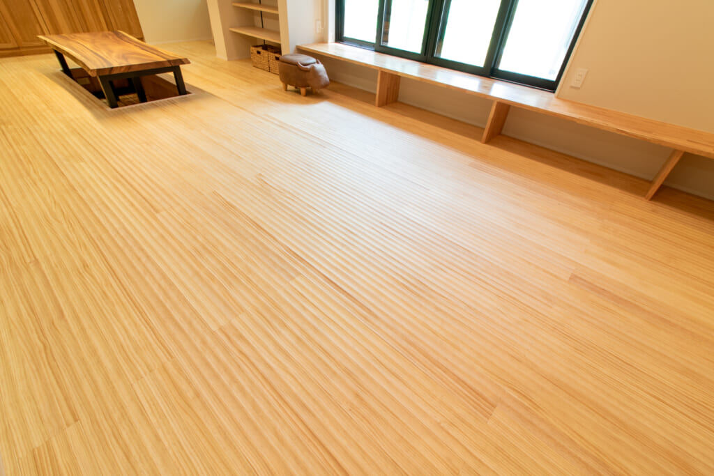 凹凸のある無垢の床材が足元から心地よさを伝え、 無垢の木のキッチン、木のカウンターや壁材が空間全体に調和をもたらします...