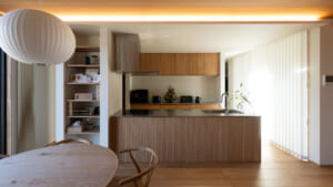 設計士であるご主人が手がけた住まい。 木の温もりをふんだんに感じられるオーク材を床(挽板)とキッチンに採用し、 自然...