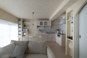 リノベーションによって、心地よい安らぎの空間へと生まれ変わったマンションの一室。 LDKを優しく包み込むのは、心を落ち...