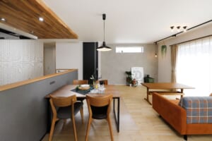 リビングを中心とした間取りの平屋のご紹介。 明るくゆったりと広くとられたリビングの床にご採用いただいたのは、国産材フロ...