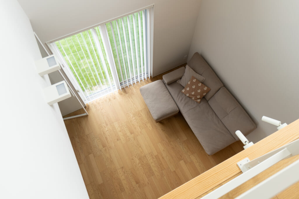2階に橋が架かっているかのように、2か所に設けた大きな吹き抜けがお家を明るくしてくれます。 キッチンや床、階段材、柱材...