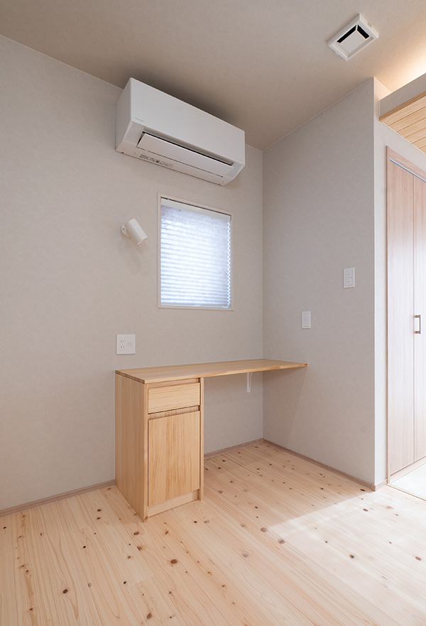 足元に広がるのは、さらりとした足触りが心地よい桧のフローリング。 吹き抜けの窓から降り注ぐ柔らかな自然光は、壁面に美し...