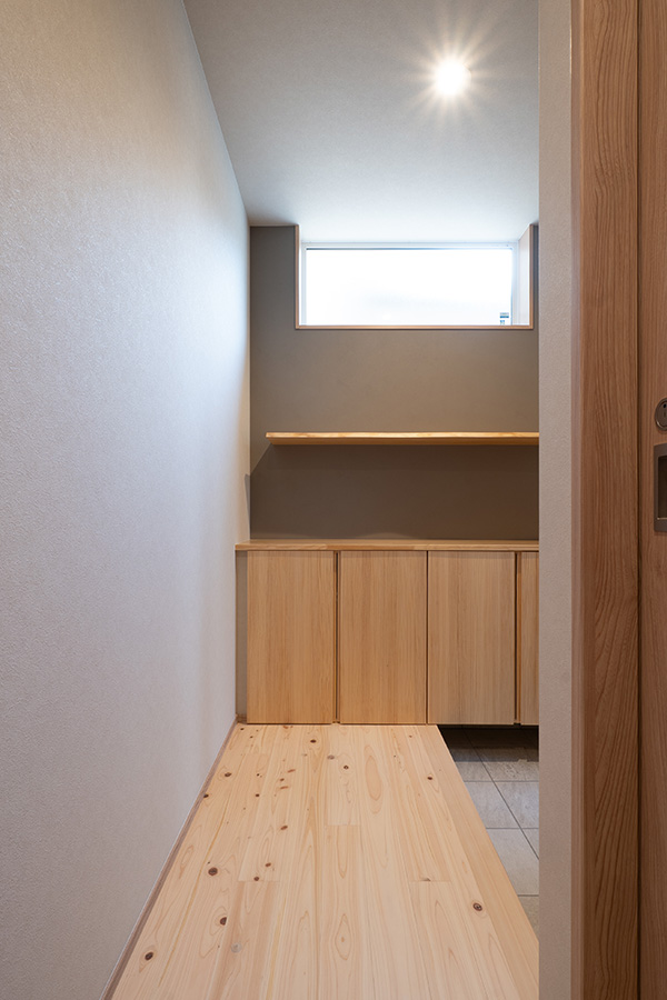 足元に広がるのは、さらりとした足触りが心地よい桧のフローリング。 吹き抜けの窓から降り注ぐ柔らかな自然光は、壁面に美し...