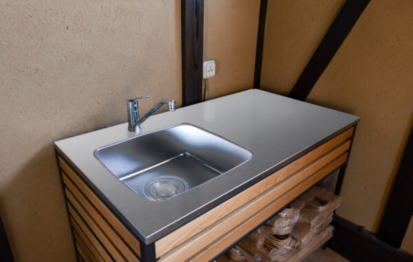 古着が持つ風合いのように、このキッチンに刻まれる傷や変化も、この建物の歴史の一部になっていく。そう思わせてくれる佇まいです。