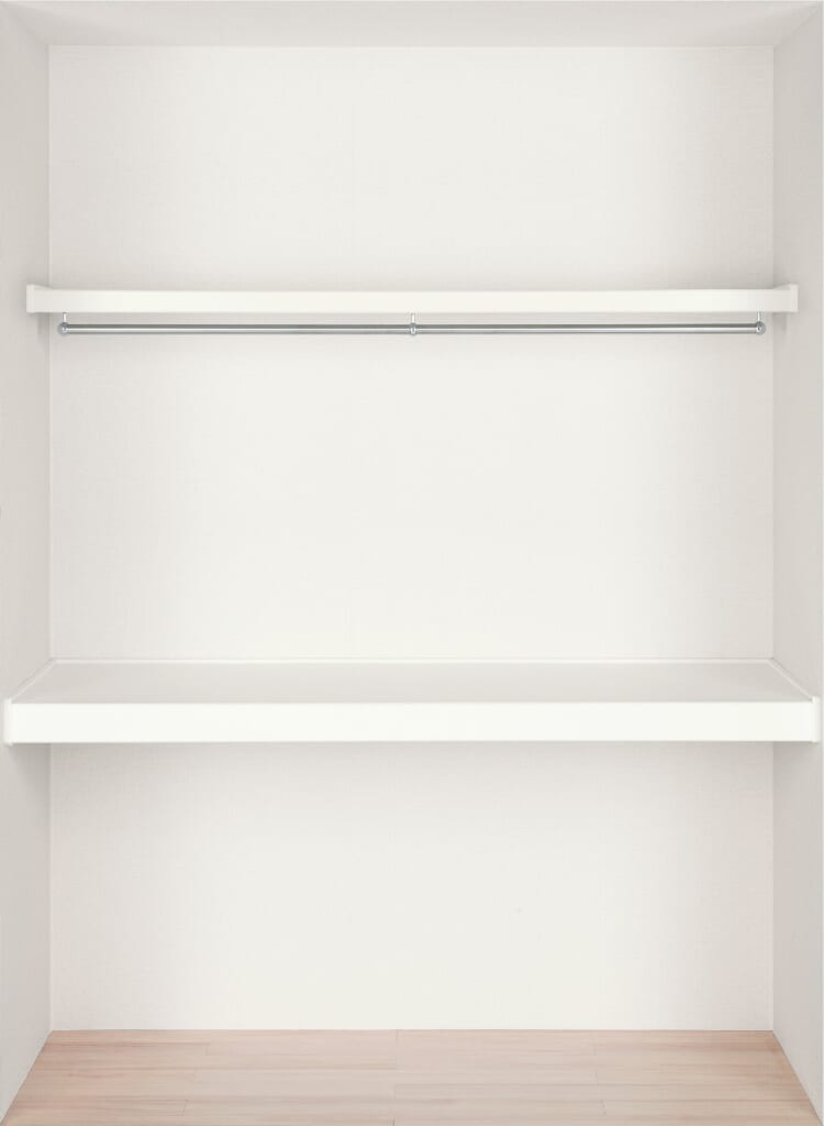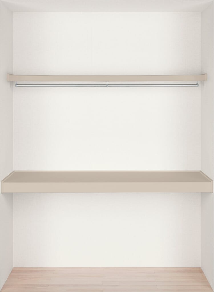 2間間口へ押入れを取り付けできるジョイントパネル。 色展開はホワイト柄とウォームグレー色の2色展開。 パネルを使っても押入れ棚板1枚あたりの耐荷重は同じです。