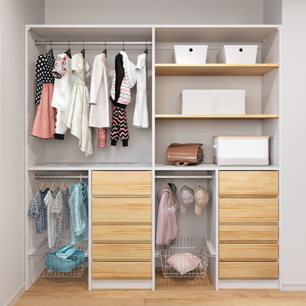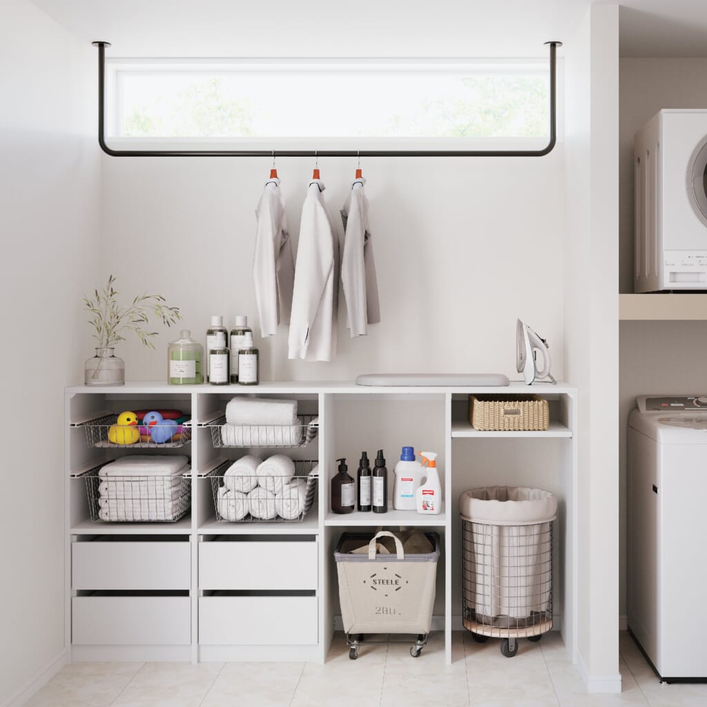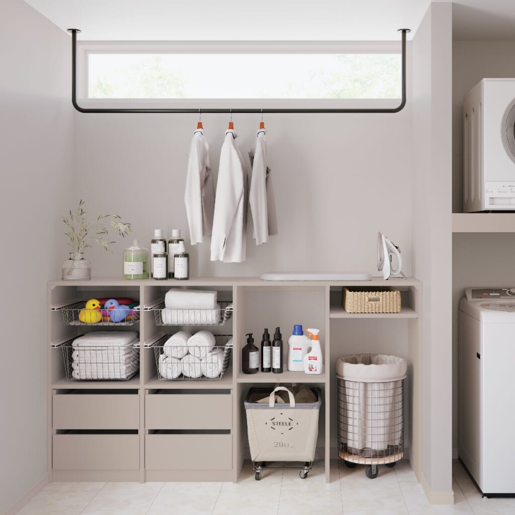 後から足せて、取り外せる新収納提案「エラボ」ですっきりきれいに片付きます。