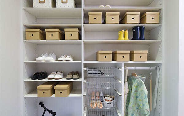 e・ra・boなら、実際の収納物やライフスタイルに合わせてフレキシブルに収納スペースを作れます。