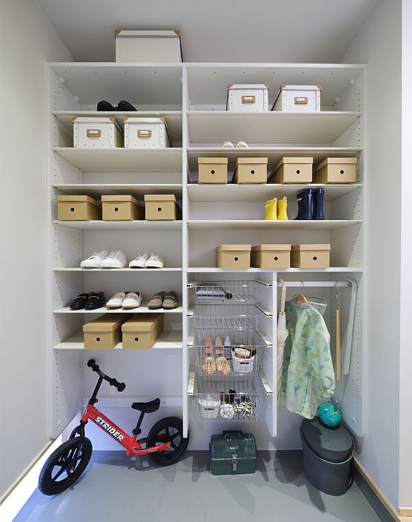 収納するモノに合わせたスペースづくりが可能です。
