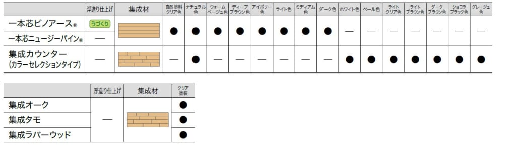 豊富な樹種・カラーバリエーションをご用意しています。