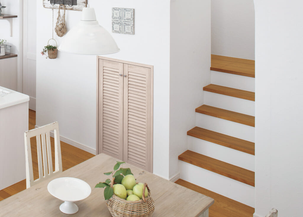 扉同士がフラットなため、閉めるとすっきりとインテリアに調和します。