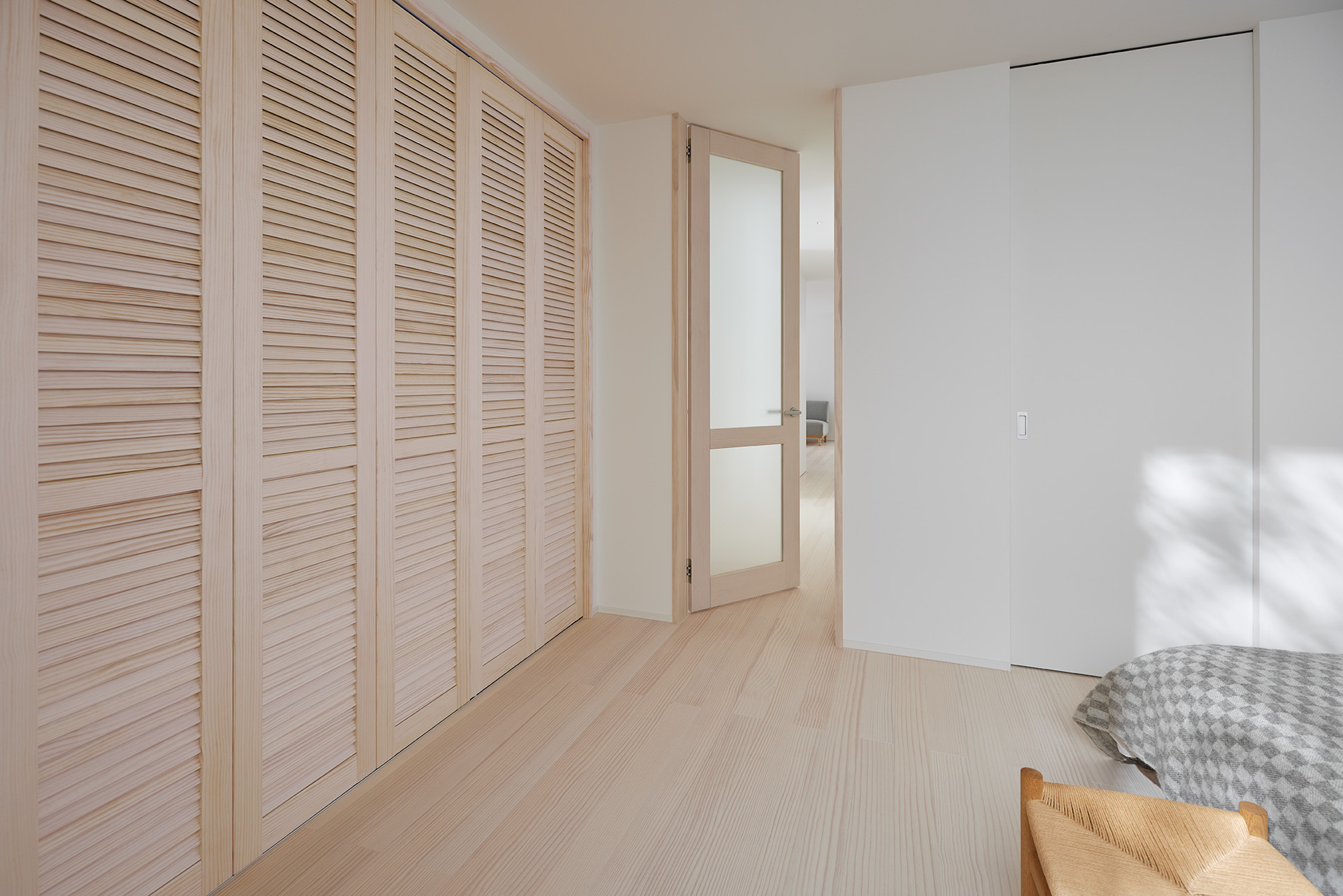 折れ戸をスライドさせて開閉する、スタンダードなクローゼット用の扉です。