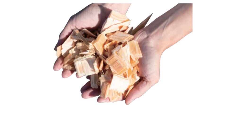 製材時に出た木端はチップにして、 紙やバイオマス燃料として つかわれます。
