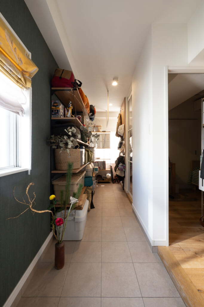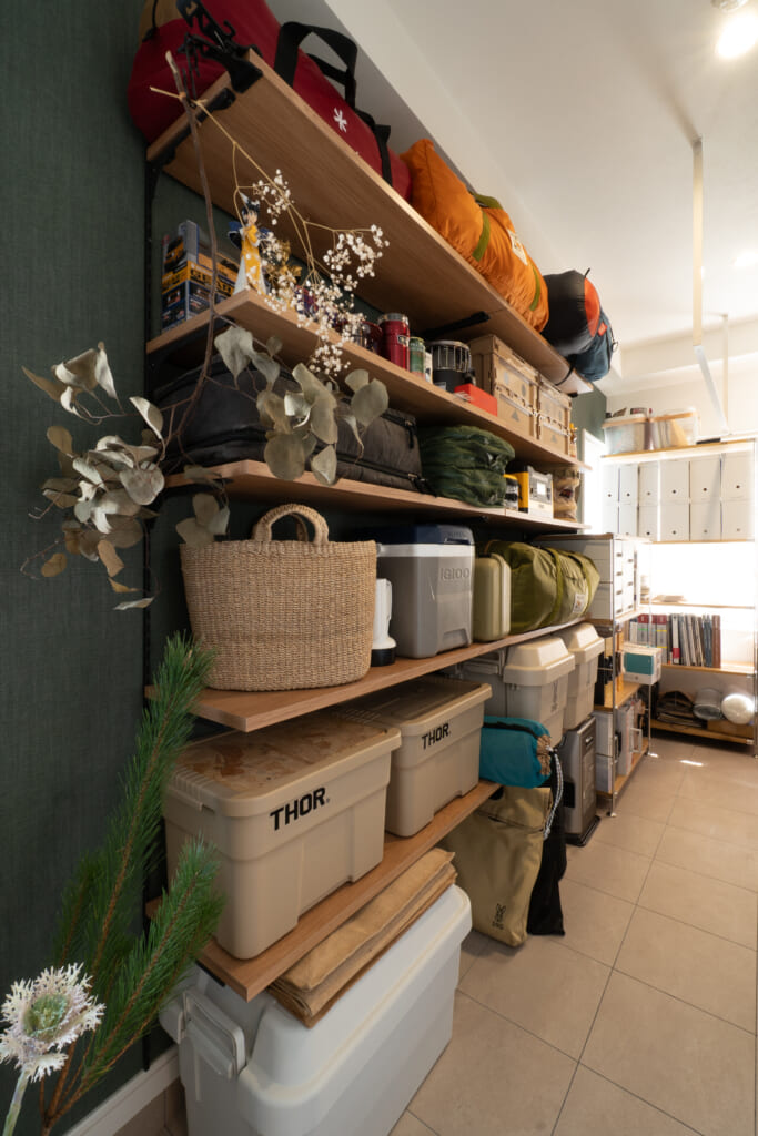 1 土間収納:趣味のキャンプ道具をたっぷりしまいたい 。