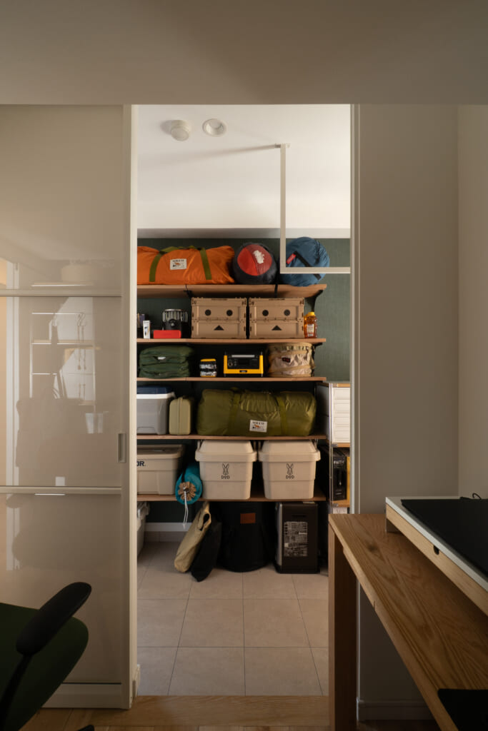 あとは、すべてをきれいに収納することってやっぱり難しいです。私の場合は、キャンプや料理は好きなので、そこをきれいに整えることは苦じゃない。でも、別に靴は好きじゃないし、、、そういうものは扉付きの収納に隠して収納しています。自分のスタイルに合わせた収納が一番ですね。