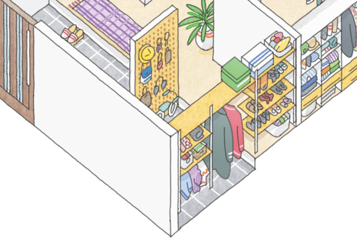 お客様を迎える「家の顔」とも言われる玄関ゾーン。 大容量の収納を設けるのはもちろん、外で使うものは、家の中に持ち込まないことがスッキリと片付くポイントです。