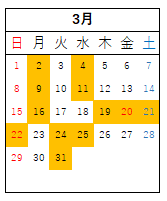 2026年3月1日(日)~3月22日(日)の期間、営業日を下記の通り変更いたします。