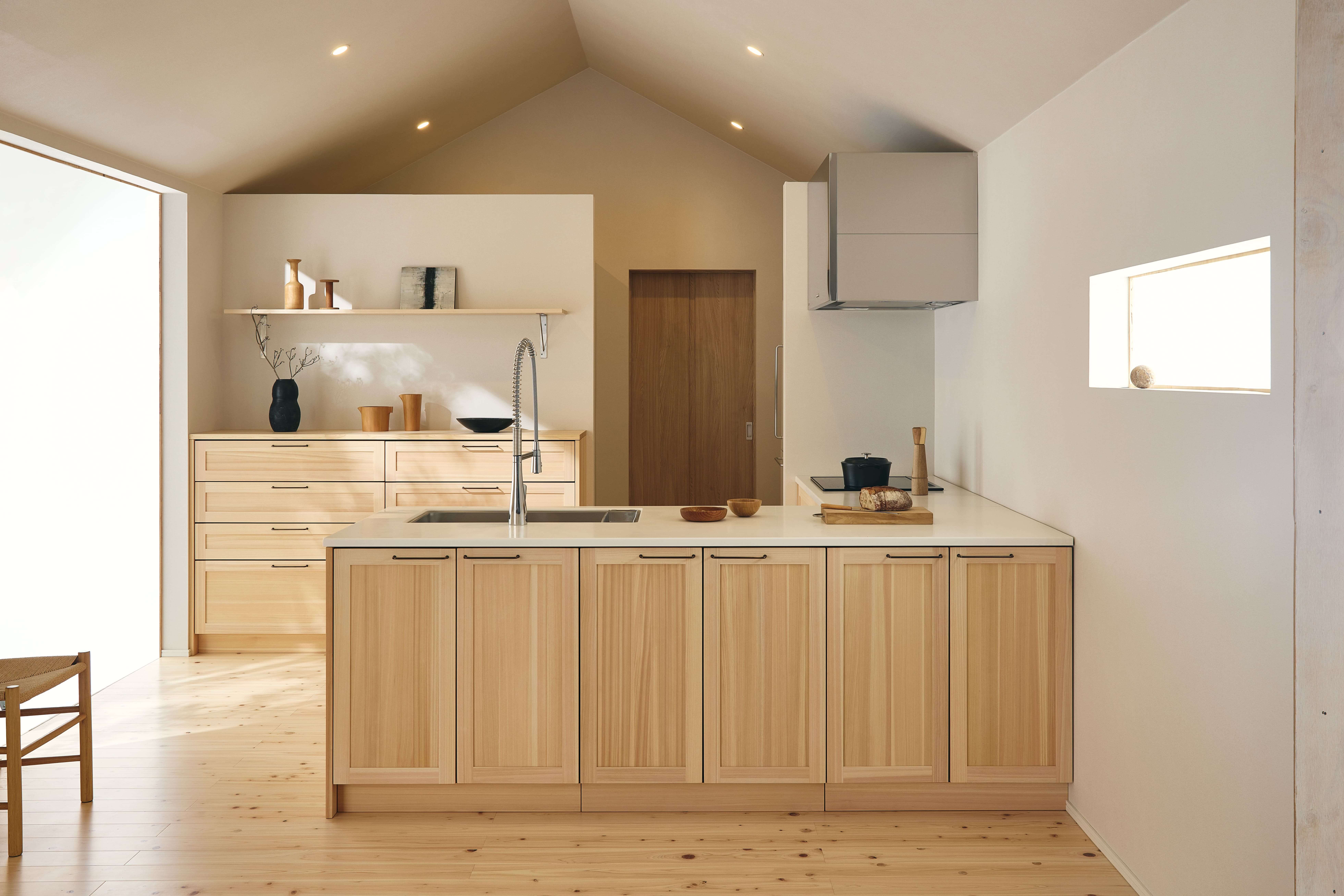 古くから伝わる日本の暮らしや、和の趣を取り入れた空間を演出するオークのキッチン。洗練された印象で、気取りすぎず、天然木の風合いをそのまま活かしたオーク材の質感は、そこで過ごすひとの時間を、さらに素敵なものへと変えてくれる上質さであふれています。