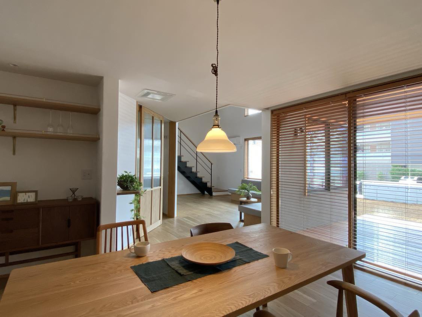代々住み継がれてきた土地。50年前に造られた家を建て替えることになりました。この家には、周辺に暮らす親族も頻繁に訪れるため、元の家の応接室・和室(仏間)は再現をするような形にしたいとのご希望がありました。床の間の材料や欄間等もきれいに外して再利用し、親族も懐かしさを感じる場所ができました。 広い敷地の庭には緑を施し、外部と内部とのつながりを感じられるように意識しました。インナーデッキやバルコニーなども外と中を繋げるよい場所になったかと思います。 家族は夫婦2人。なるべく空間を繋げるよう意識しました。その上でデザイン階段Lightの採用はとても有効だったと感じております。内装には木をバランスよく使い、やはり前の家で使っていたいくつかのステンドグラス照明を再利用し、大谷石が貼ってあったポーチの壁なども同じような雰囲気を出すように仕上げました。洗濯・物干しWICを繋げ、家事動線も配慮しています。