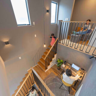 ナチュラルな生活をテーマに木と緑に囲まれた生活をイメージしてつくりました。内装の壁・天井にピノアースの羽目板を貼ることで、木の質感を感じる落ち着いたリビングにし、外観もナチュラル感のある木目調サイディングと木目調のサッシを使用することで、外も中もナチュラル感のある住宅に仕上げました。