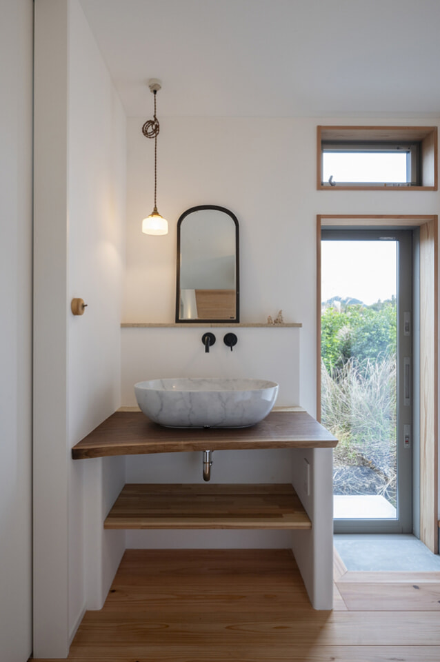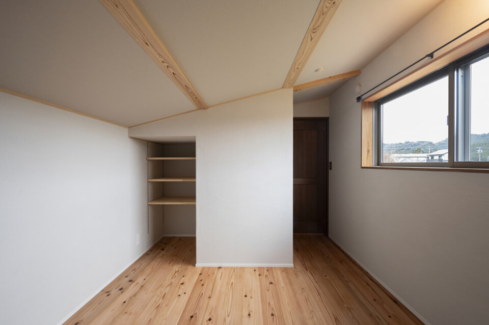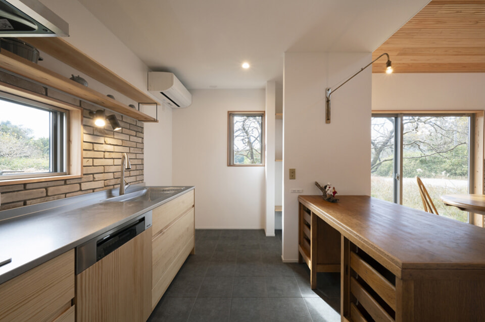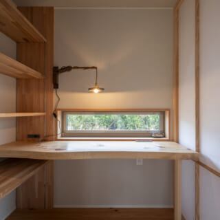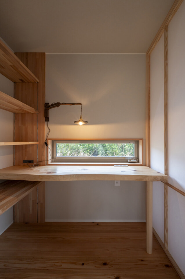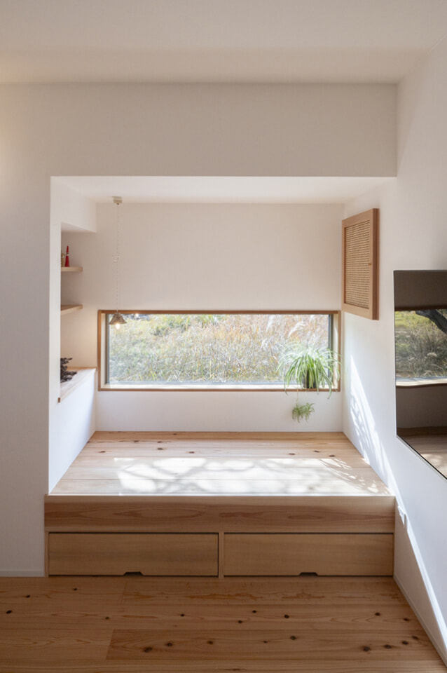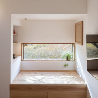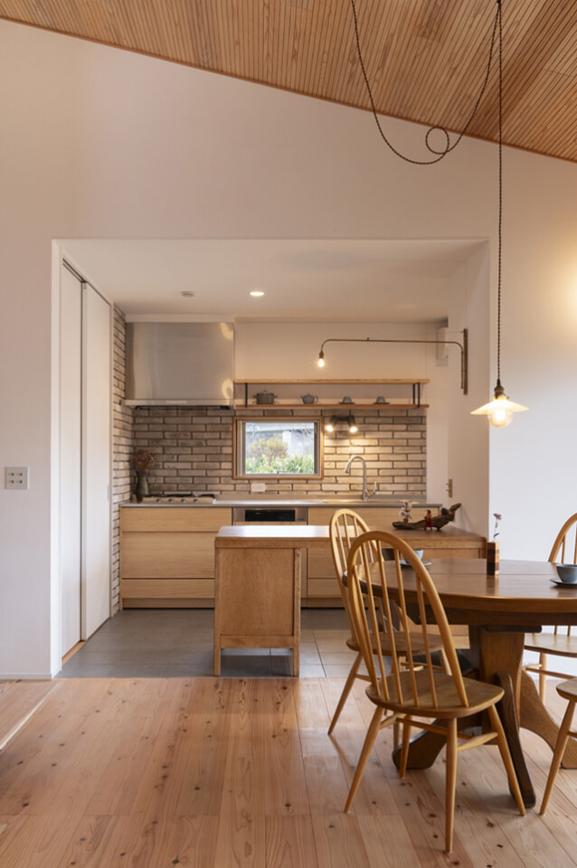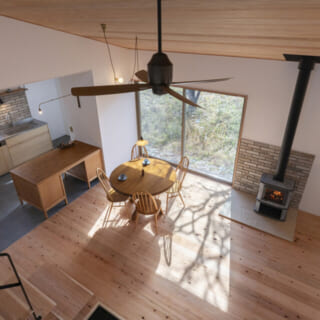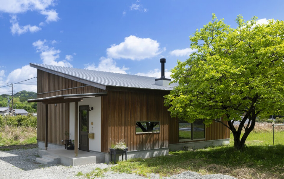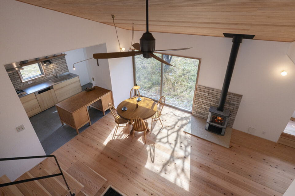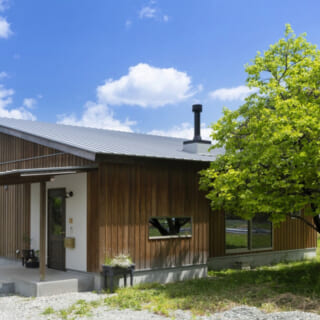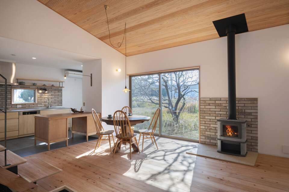 「木漏れ日の家」ご実家の広い敷地に建築前から自生していた柿の木を生かし、自然の中にひっそりと佇むような平屋を計画しました。 自然と一体化する住まいで、木の木陰ができ、木々が美しく見える向きにリビングを配置することで葉のきらめきを眺めることができます。余計なものが目にはいらないシンプルな空間デザインとすることでより一層、暮らしの中で自然の美しさが感じられます。冬は薪ストーブのまわりに自然と家族が集まり、ゆっくりとした時間が流れます。地域の無垢の木をふんだんに使うことで自然素材ならではの調湿性や涼しさ・木目の美しさがとても魅力的です。地域材を積極的に活用することで森の循環も含めた循環型建築を目指しています。