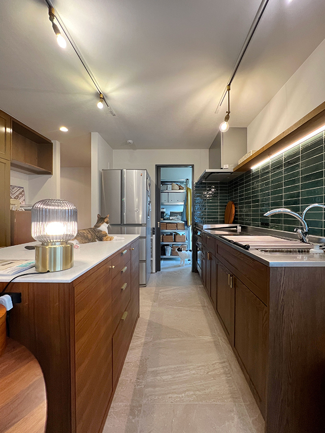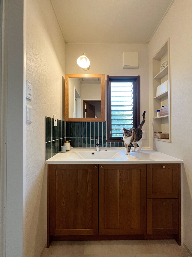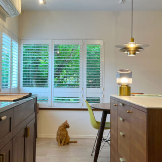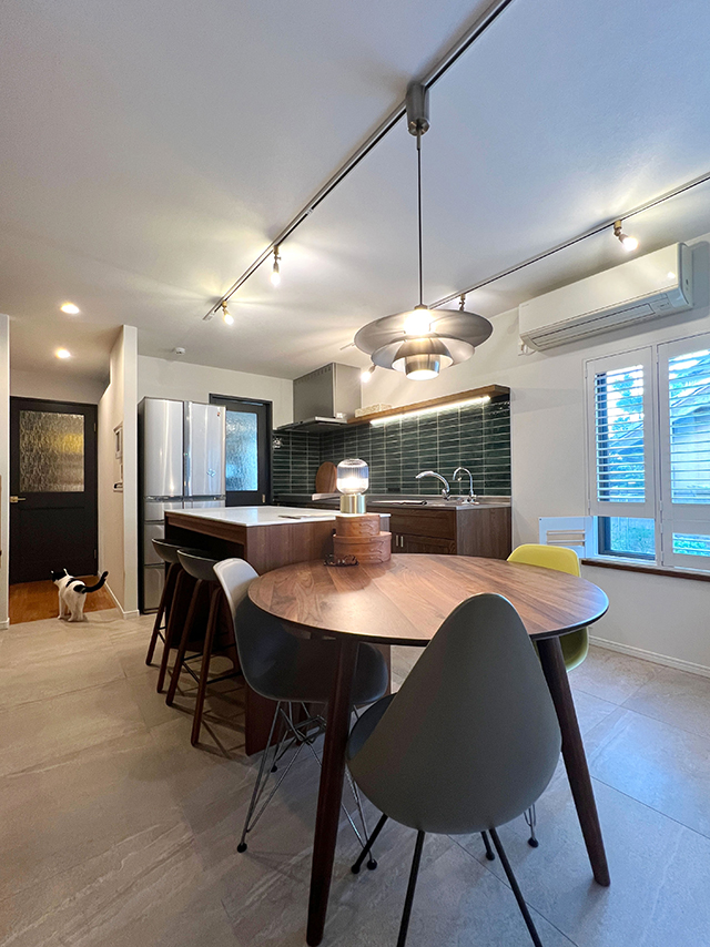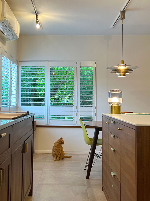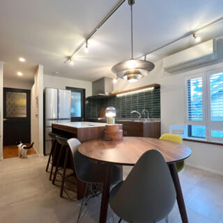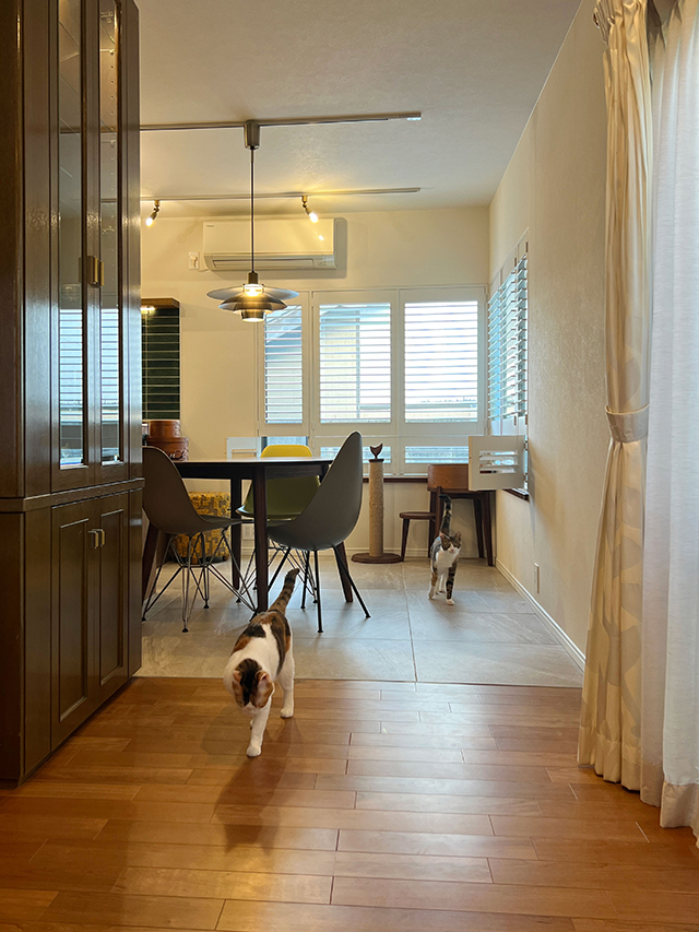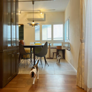 【テーマ】 継承する家と、7匹の愛猫とのお気に入りの暮らし 【きっかけ】 奥様のご実家である築30年の軽量鉄骨造メーカー住宅を継承し、メンテナンス時期と、暮らしの中で抱いてきたご不満・問題点が熟してきた事を機にリフォーム計画が始動。 【ご要望】 奥様が7匹の愛猫達とストレスなく快適に過ごせる空間にする事を念頭に、特にお料理好きでキッチンに立たれる時間が多い事から、①半クローズ型キッチンによる暗さ・閉塞感の解消②ご自身に合った作業動線や収納計画への見直し③素材を始めとするインテリアイメージの落とし込み④猫の過ごし方・習性(にゃるそっくという言葉も初めて知りました)等について、事細かくしたためられた要望書を基に初回打合せを開始。ご予算や構造上の観点から、大きな間取り変更をせずに、最小限の動線の変更や、内装・造作等のリニューアルに止めて、理想のイメージの実現に向けて進めることに。