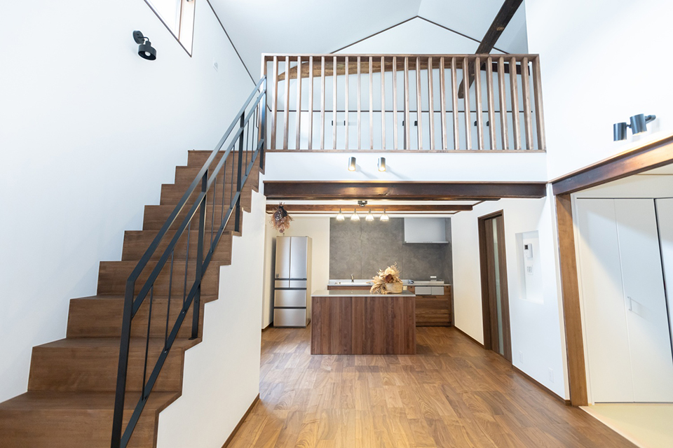 古民家を購入しフルリノベーションをしたお家です。お施主様が、小さい頃に同居されていた祖父母の家の雰囲気へのこだわりが強くあったので、その想いを大切にしながら、現在は解体されている祖父母の家の思い出が蘇ってくるようなおうちにしたいと思いリノベーションに取り組みました。 断熱性や耐震性などの性能面の不安をなくし、フルリノベーションをすることで新しくて気持ちよく使える設備や動線にしつつも、古民家の雰囲気を壊さない。その新しいものと古いものを違和感なく融合させる部分を特にこだわりました。 友人を呼んで、みんなでお料理を楽しんだり、お食事をしたりするのが好きなお施主様。今回採用したウッドワンのキッチンのカウンタ―で、子供達もみんなで集まってピザ生地をつくったり、盛り付けをしたり、キッチンを中心に人が集まる家を目指しました。