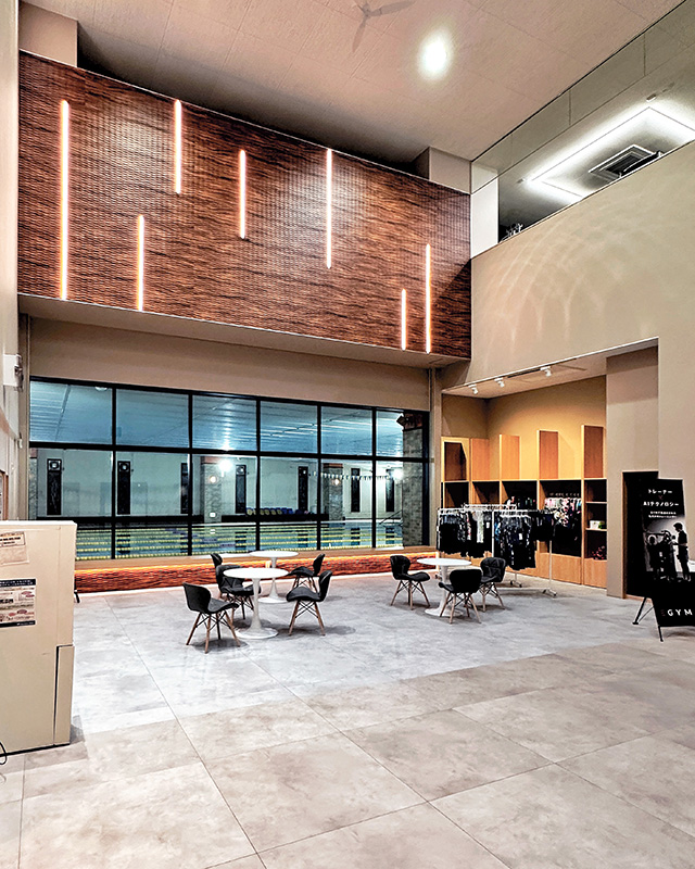 築20年を経た施設を、高級住宅街の立地と富裕層の会員層にふさわしい「木のぬくもり」と上質さを感じる空間へと再構築した。特に吹き抜けホールでは、ウッドワンのデザインウォールを主役に、光と陰影が木の素材感を際立たせる設計とし、視覚だけでなく触覚的な高級感を追求。照明位置はパネルの凹凸と調和するようミリ単位で調整し、広い空間に柔らかさと静けさをもたらした。受付カウンターや照明も、会員のライフスタイルに寄り添うホテルライクな意匠と機能性を両立。環境負荷軽減にも配慮し、メンテナンス性の高い器具配置とし、今後の基準となる旗艦店として計画した。