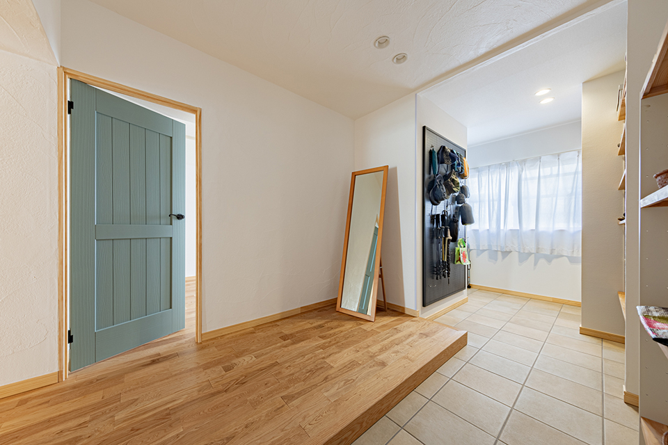 北側の寝室と中央にあるダイニングキッチンだけで、ほぼ生活が完結していて、暖かくて明るい南側の居室を持て余していらっしゃいました。南側をリビングの様に使われる事を想定されていましたが、構造的にキッチンと繋げる事が難しかったので、寝室とプライベートリビングを兼ねた空間にする事をご提案しました。ダイニングキッチンへ開放的な扉で繋がる広い寝室は、パブリックとプライベートを程よく間仕切り、空間的なゆとりを生み出します。 アウトドアがご趣味でいらっしゃるので、北側の洋室は思い切ってシューズクロークにする事をご提案しました。狭くなりがちなマンションの玄関が開放的で個性的な空間となり、仕事で疲れて帰宅するお施主様の癒しとなる様に内装の提案をしました。