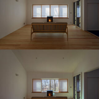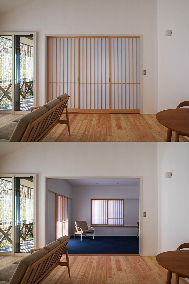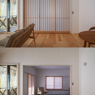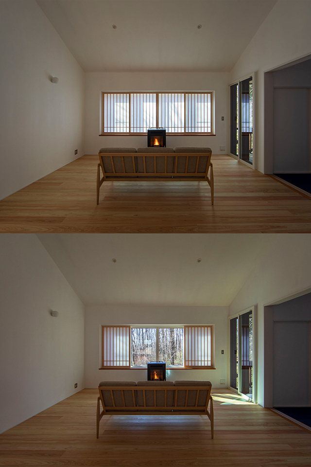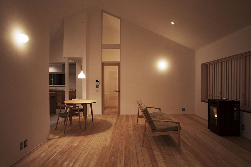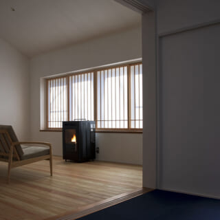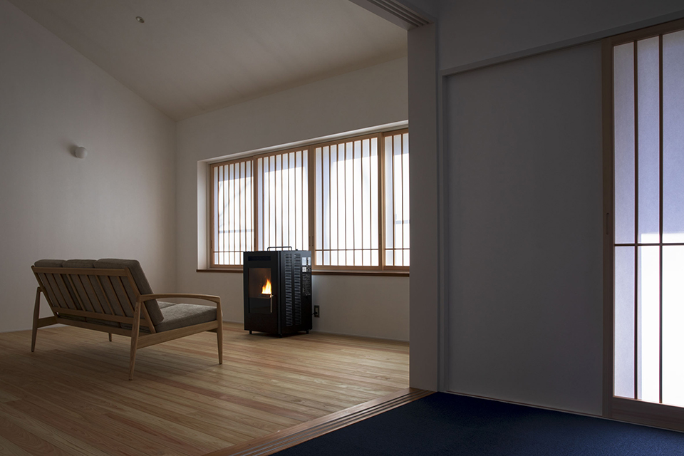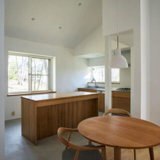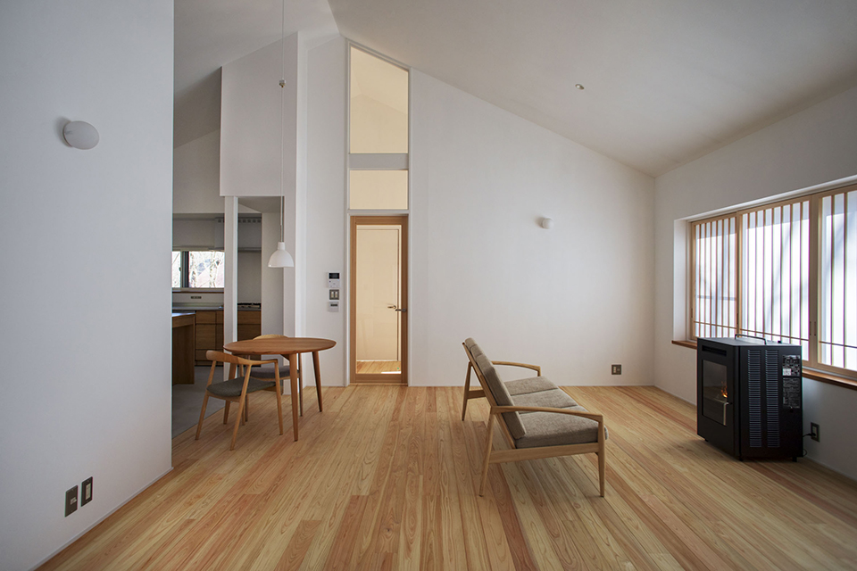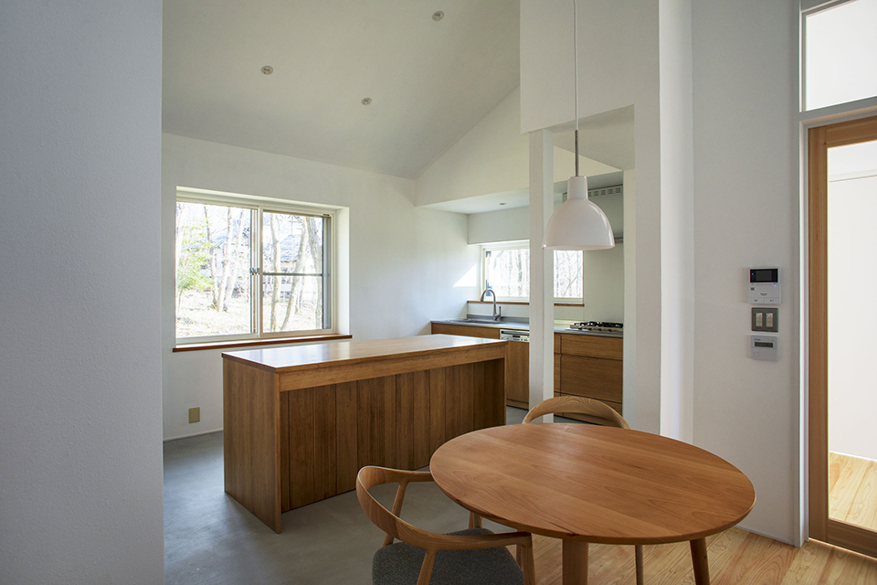 【那須-森の別荘-リノベーション】 那須の森の中の別荘地に建つ平屋のリノベーション。 木々に囲まれた夏の避暑地ではあるが、冬も使えるように床暖房とペレットストーブを設置。夏、木々の緑に囲まれた景色を楽しむのもいいですが、冬、那須らしく雪で白んだ景色を火にあたりながら楽しむのも興があるのではないでしょうか。 間取りは変更せず、和室をカーペット敷きのゲストルーム兼書斎に。 トイレ・洗面台を作り変え、既存の湿式の浴室を清掃・修繕。 キッチンをスイージーにし、レイアウト変更。 床は日光桧の無節。壁・天井は漆喰塗り。障子は組子を変更し入れ替えています。 障子で開閉できる外とのつながりは、閉じれば柔らかく光を取り込み、開ければ木々に囲まれるような穏やかなものに。 鳥のさえずりが聞こえてきたり、しんしんと積もる雪が音を消したり。 季節の織り成す気配と共に、ゆっくり過ごせるよう計画した別荘のリノベーション